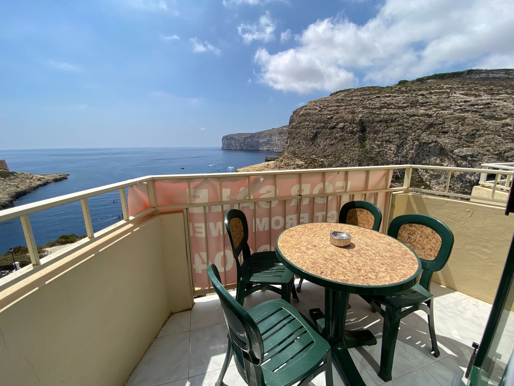 Majestic Sea & Cliff Views from Your Own Terrace! This beautiful 4th-floor apartment in Xlendi offers breathtaking sea and cliff views right from the living room and terrace – perfect for relaxing evenings or entertaining guests!