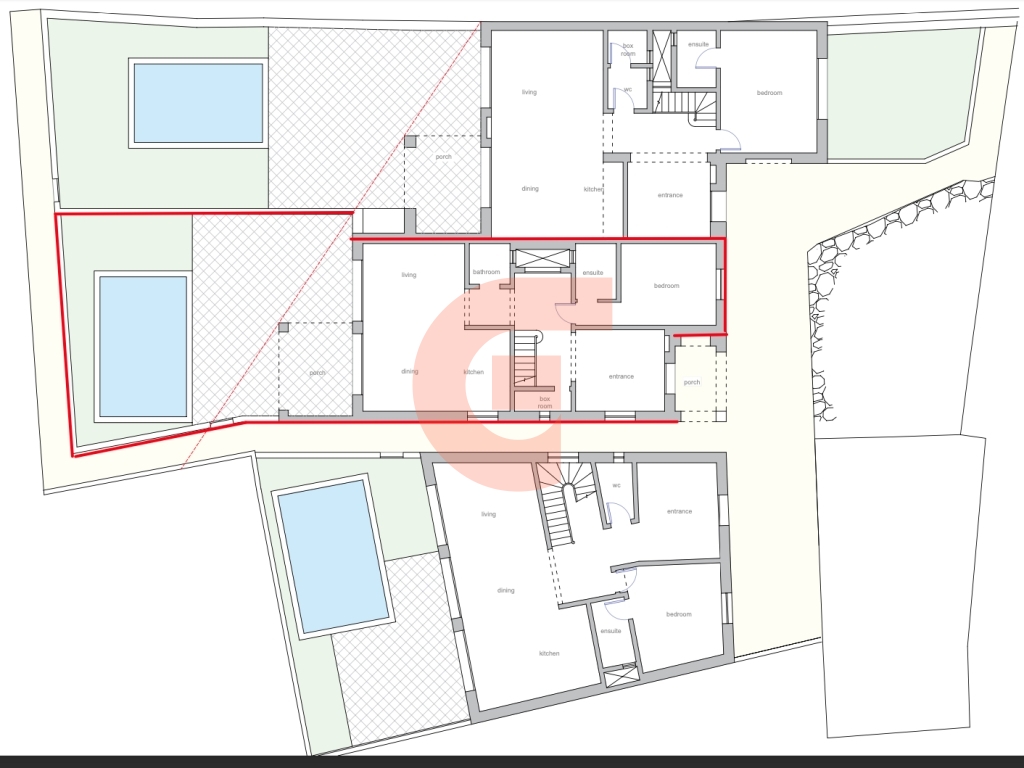 Located in the serene outskirts in this quaint village in Gozo overlooking outside development zone comes to this large spacious newly built Rustic House, nice bright accommodation consist of carport welcoming hallway leading to an plan lounge/dining/kitchen/living, overlooking the sunny pool/ deck/ entertaining area, study room, 5 bedroom all en-suite complemented with terraces enjoying open country views reaching sea. SOLD IN SHELL FORM. FREEHOLD